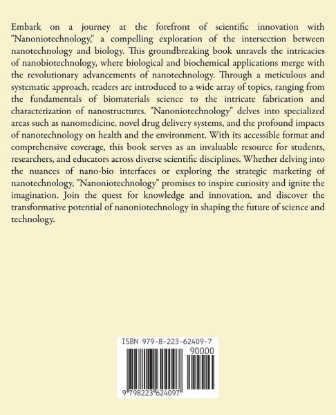 Embark on a journey at the forefront of scientific innovation with "Nanoniotechnology," a compelling exploration of the intersection between nanotechnology and biology. This groundbreaking book unravels the intricacies of nanobiotechnology, where biological and biochemical applications merge with the revolutionary advancements of nanotechnology. Through a meticulous and systematic approach, readers are introduced to a wide array of topics, ranging from the fundamentals of biomaterials science to the intricate fabrication and characterization of nanostructures. "Nanoniotechnology" delves into specialized areas such as nanomedicine, novel drug delivery systems, and the profound impacts of nanotechnology on health and the environment. With its accessible format and comprehensive coverage, this book serves as an invaluable resource for students, researchers, and educators across diverse scientific disciplines. Whether delving into the nuances of nano-bio interfaces or exploring the strategic marketing of nanotechnology, "Nanoniotechnology" promises to inspire curiosity and ignite the imagination. Join the quest for knowledge and innovation, and discover the transformative potential of nanoniotechnology in shaping the future of science and technology.