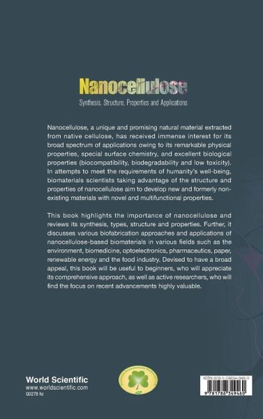 Nanocellulose, a unique and promising natural material extracted from native cellulose, has received immense interest for its broad spectrum of applications owing to its remarkable physical properties, special surface chemistry, and excellent biological properties (biocompatibility, biodegradability and low toxicity). In attempts to meet the requirements of humanity's well-being, biomaterials scientists taking advantage of the structure and properties of nanocellulose aim to develop new and formerly non-existing materials with novel and multifunctional properties. This book highlights the importance of nanocellulose and reviews its synthesis, types, structure and properties. Further, it discusses various biofabrication approaches and applications of nanocellulose-based biomaterials in various fields such as the environment, biomedicine, optoelectronics, pharmaceutics, paper, renewable energy and the food industry. Devised to have a broad appeal, this book will be useful to beginners, who will appreciate its comprehensive approach, as well as active researchers, who will find the focus on recent advancements highly valuable.