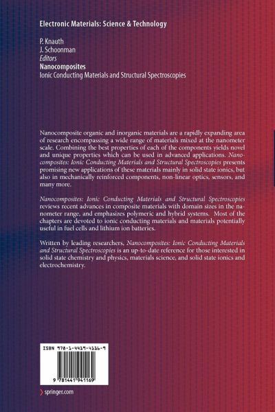 Composite Polymeric Electrolytes.- Proton-Conducting Nanocomposites and Hybrid Polymers.- Hybrid Metal Oxide-Polymer Nanostructured Composites: Structure and Properties.- Structure and Mechanical Properties of Nanocomposites with Rod- and Plate-Shaped Nanoparticles.- Gaining Insight into the Structure and Dynamics of Clay-Polymer Nanocomposite Systems Through Computer Simulation.- X-ray Absorption Studies of Nanocomposites.- Dynamical Aspects of Nanocrystalline Ion Conductors Studied by NMR.- Mössbauer Spectroscopy and New Composite Electrodes for Li-ion batteries.