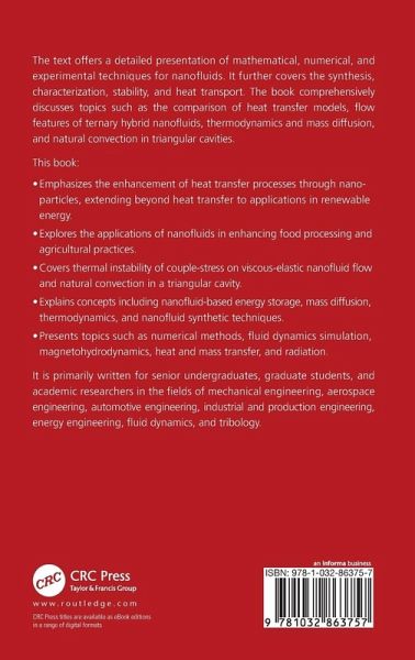 The text offers a detailed presentation of mathematical, numerical, and experimental techniques for nanofluids. It further comprehensively discusses topics such as the comparison of heat transfer models, flow features of ternary hybrid nanofluids, thermodynamics and mass diffusion, and natural convection in triangular cavities.