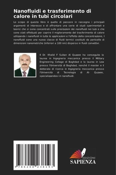 Lo scopo di questo libro è quello di passare in rassegna i principali argomenti di interesse e di affrontare una serie di studi sperimentali e teorici che si sono concentrati sulle prestazioni dei nanofluidi nei tubi e che sono stati effettuati per coprire il miglioramento del trasferimento di calore utilizzando i nanofluidi in tutte le applicazioni e l'effetto della concentrazione, I nanofluidi sono una nuova classe di fluidi termici costituiti da particelle di dimensioni nanometriche (inferiori a 100 nm) disperse in fluidi convettivi.