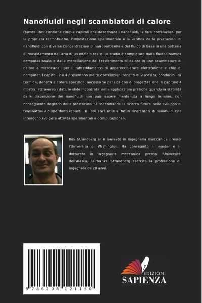 Questo libro contiene cinque capitoli che descrivono i nanofluidi, le loro correlazioni per le proprietà termofisiche, l'impostazione sperimentale e la verifica delle prestazioni di nanofluidi con diverse concentrazioni di nanoparticelle e del fluido di base in una batteria di riscaldamento dell'aria di un edificio reale. Lo studio è completato dalla fluidodinamica computazionale e dalla modellazione del trasferimento di calore in uno scambiatore di calore a microcanali per il raffreddamento di apparecchiature elettroniche e chip di computer. I capitoli 2 e 4 presentano molte correlazioni recenti di viscosità, conducibilità termica, densità e calore specifico, necessarie per i calcoli di progettazione. Il capitolo 4 mostra, attraverso i dati, le sfide incontrate nelle applicazioni pratiche quando la stabilità della dispersione dei nanofluidi non può essere mantenuta a lungo termine, con conseguente degrado delle prestazioni.Si raccomanda la ricerca futura nello sviluppo di tensioattivi e disperdenti robusti . Il libro sarà utile ai futuri ricercatori di nanofluidi che intendono svolgere attività sperimentali e computazionali.