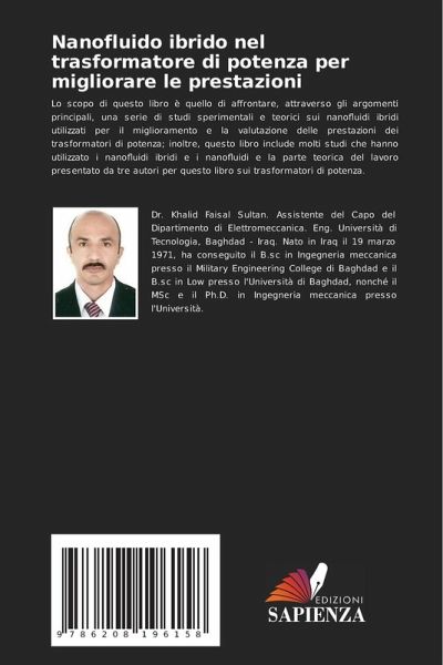 Lo scopo di questo libro è quello di affrontare, attraverso gli argomenti principali, una serie di studi sperimentali e teorici sui nanofluidi ibridi utilizzati per il miglioramento e la valutazione delle prestazioni dei trasformatori di potenza; inoltre, questo libro include molti studi che hanno utilizzato i nanofluidi ibridi e i nanofluidi e la parte teorica del lavoro presentato da tre autori per questo libro sui trasformatori di potenza.