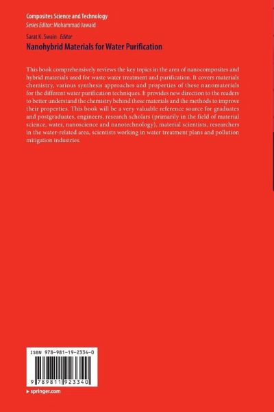 Water purification: Past to present.- Introduction to Nanostructured Hybrid materials: Preparation, Function, and Application for Water Purification.- New Generation Nano-Based Adsorbents for Water Purification.- Hybrid materials Membranes for Water Purification.- Polymer/Carbon Nanotubes Mixed Matrix for Water Purification.- Water Treatment by polymeric hybrid Materials.- Water Purification by nanomaterials.- Nanocomposites for Heavy Metals Removal from water.- Nanocomposites for dye Removal from water.- Carbon Nanotube-Based composites for Water Purification.- Carbon nanofiber based composites for water purification.- Graphene Oxide Based Membranes for water purification.- Graphene-Based Materials for Water Purification.- Iron Oxide Nanomaterials for Water Purification.- Magnetic Nanoparticles for Water Purification.- Modifications of Magnetic Nanoparticles for Water Purification.- Metal Nanoparticles for Water Purification.- Photocatalytic Detoxification of nanocomposites for purification of Water.- LDH based nanocomposites for water purification.- Polysacharide based nanocomposites for water purification.- Water purification by nanostructured materials: A concluding remark.