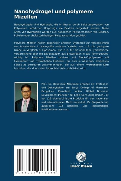 Nanohydrogele sind Hydrogele, die in Wasser durch Selbstaggregation von Polymeren natürlichen Ursprungs wie Dextran hergestellt werden. Diese Arten von Hydrogelen werden aus natürlichen Polysacchariden wie Dextran, Pullulan oder cholesterinhaltigen Polysacchariden gebildet.Polymere Mizellen haben gegenüber anderen Systemen zur Verabreichung von Arzneimitteln in Nanogröße mehrere Vorteile, wie z. B. die geringere Größe im Vergleich zu Liposomen, was z. B. für die perkutane lymphatische Verabreichung oder die Extravasation aus Blutgefäßen in das Tumorgewebe wichtig ist. Polymere Mizellen basieren auf Block-Copolymeren mit hydrophilen und hydrophoben Einheiten, die sich in wässriger Umgebung selbst zu Strukturen zusammenfügen, die aus einem hydrophoben Kern bestehen, der durch eine hydrophile Hülle stabilisiert wird.