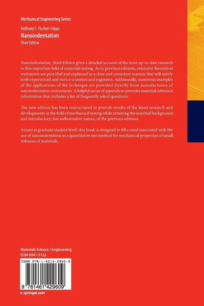 Nanoindentation, Third Edition gives a detailed account of the most up-to-date research in this important field of materials testing. As in previous editions, extensive theoretical treatments are provided and explained in a clear and consistent manner that will satisfy both experienced and novice scientists and engineers. Additionally, numerous examples of the applications of the technique are provided directly from manufacturers of nanoindentation instruments. A helpful series of appendices provides essential reference information that includes a list of frequently asked questions.