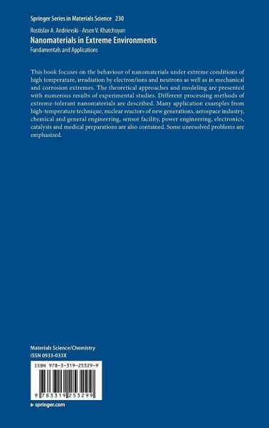 This book focuses on the behaviour of nanomaterials under extreme conditions of high temperature, irradiation by electron/ions and neutrons as well as in mechanical and corrosion extremes. The theoretical approaches and modeling are presented with numerous results of experimental studies. Different processing methods of extreme-tolerant nanomaterials are described. Many application examples from high-temperature technique, nuclear reactors of new generations, aerospace industry, chemical and general engineering, sensor facility, power engineering, electronics, catalysis and medical preparations are also contained. Some unresolved problems are emphasized.