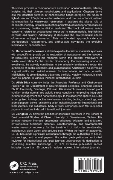 This book provides a comprehensive exploration of nanomaterials, offering insights into their diverse morphologies and applications. Chapters delve into the industrial potential of nanocellulose-based aerogels, the future of light-driven and UV-photodetector materials, and the use of functionalized nanomaterials for wastewater restoration.