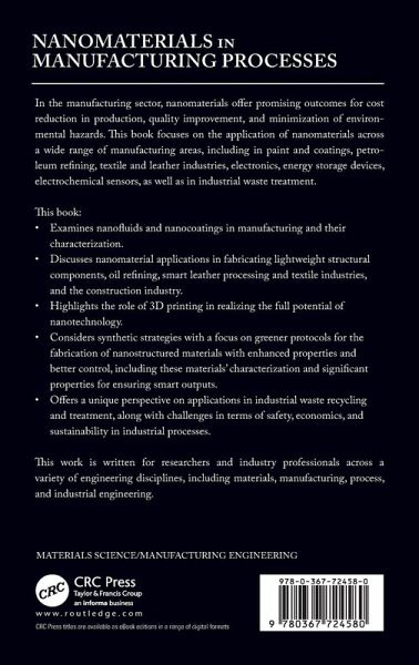 This book focuses on the application of nanomaterials across a wide range of manufacturing areas, including paint and coatings, petroleum refining, textile and leather industries, electronics, energy storage devices, electrochemical sensors, as well as in industrial waste treatment.