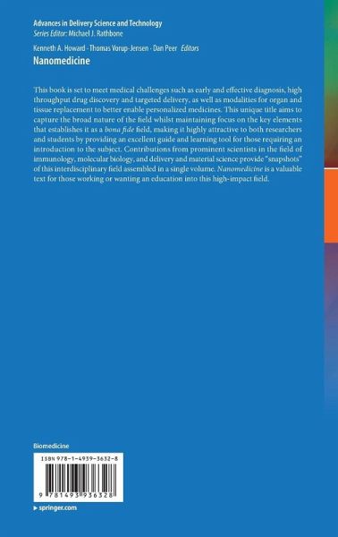 1 Nanomedicine: working towards defining the field.- 2 Complement regulators and inhibitors in health and disease: A structural perspective.- 3 The art of complement: complement sensing of nanoparticles and consequences.- 4 The nanoscience of polyvalent binding by proteins in the immune response .- 5 Microfluidics-based Single Cell Analytical Platforms for Characterization of Cancer.- 6 Nanotheranostics and in-vivo imaging.- 7 Targeting cancer using nanocarriers.- 8 The importance of particle geometry in design of therapeutic and imaging nanovectors.- 9 Delivery of peptides and proteins to the brain using nano-drug delivery systems and other formulations.- 10 Polymer-based DNA delivery systems for cancer immunotherapy.- 11 The use of silk in nanomedicine applications.- 12 Nanotoxicology and regulatory affairs.- 13 The application of nanotechnology for implant drug release.- 14 Guided cellular responses by surface cues for nanomedicine applications