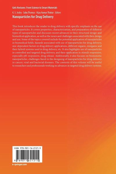 Chapter 1: Nanotechnology and its implication in drug delivery.- Chapter 2: Solid lipid nanoparticles in drug delivery.- Chapter 3: Hydrogel nanoparticles, Nanocrystals & Nanosuspensions for drug delivery.- Chapter 4: Biomimetic nanoparticles in drug delivery.- Chapter 5: Quantum dots in drug delivery.- Chapter 6: Stimuli ressposive hybrid polymeric nanoparticles for targeted drug delivery.- Chapter 8: Ceramic based hybrid nanoparticles in drug delivery.- Chapter 9: Application of hybrid NPs in image guided drug delivery.- Chapter 10: Biological understanding of nanoparticulate drug delivery.- Chapter 11: Challenges in nanoparticle designing for drug delivery.- Chapter 12: Biomaterials for anti-cancer drugs.- Chapter 13: Biomaterials for anti-viral drug delivery.- Chapter 14: Biomaterials for anti bacterial drug delivery.- Chapter 15: Theoretical modelling of drug delivery.