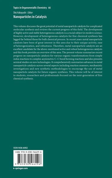 Gold Nanoparticles for Oxidation Reactions: Critical Role of Supports and Au Particle Size.- Metal nanoparticles for redox reactions.- Earth abundant metal nanoparticle catalysis.- Precise synthesis of nanoparticle and their catalytic behavior.- Coupling reaction and C-H activation by metal nanoparticle.- Nanoparticle catalysts in flow system.- Nanoparticle catalyst meets biochemistry.- Chiral nanoparticle for asymmetric catalysis.