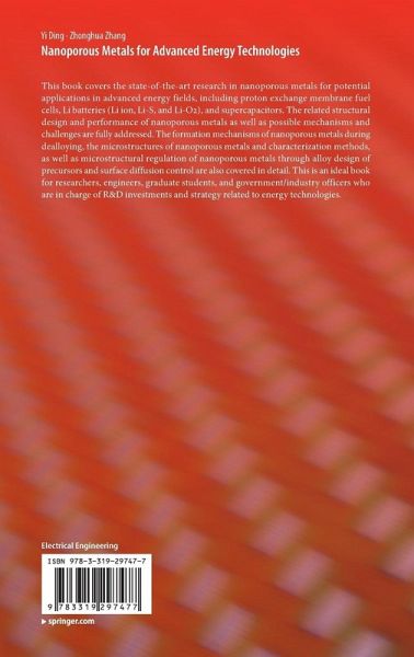 This book covers the state-of-the-art research in nanoporous metals for potential applications in advanced energy fields, including proton exchange membrane fuel cells, Li batteries (Li ion, Li-S, and Li-O2), and supercapacitors. The related structural design and performance of nanoporous metals as well as possible mechanisms and challenges are fully addressed. The formation mechanisms of nanoporous metals during dealloying, the microstructures of nanoporous metals and characterization methods, as well as miscrostructural regulation of nanoporous metals through alloy design of precursors and surface diffusion control are also covered in detail. This is an ideal book for researchers, engineers, graduate students, and government/industry officers who are in charge of R&D investments and strategy related to energy technologies.
