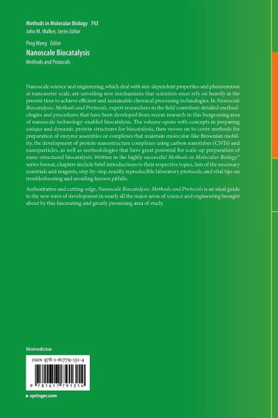 Nanoscale science and engineering, which deal with size-dependent properties and phenomenon at nanometer scale, are unveiling new mechanisms that scientists must rely on heavily at the present time to achieve efficient and sustainable chemical processing technologies. In Nanoscale Biocatalysis: Methods and Protocols, expert researchers in the field contribute detailed methodologies and procedures that have been developed from recent research in this burgeoning area of nanoscale technology-enabled biocatalysis. The volume opens with concepts in preparing unique and dynamic protein structures for biocatalysis, then moves on to cover methods for preparation of enzyme assembles or complexes that maintain molecular-like Brownian mobility, the development of protein-nanostructure complexes using carbon nanotubes (CNTs) and nanoparticles, as well as methodologies that have great potential for scale-up preparation of nano-structured biocatalysts. Written in the highly successful Methods in Molecular Biology(TM) series format, chapters include brief introductions to their respective topics, lists of the necessary materials and reagents, step-by-step, readily reproducible laboratory protocols, and vital tips on troubleshooting and avoiding known pitfalls.