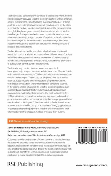 The book gives a comprehensive up-to-date summary of the existing information on the structural/electronic properties, chemistry and catalytic properties of vanadium and molybdenum containing catalysts. It discusses the importance of nanoscience for the controlled synthesis of catalysts with functional properties and introduces the necessary background regarding surface properties and preparation techniques, leading from a textbook level to the current state of knowledge. Then follows an extensive survey and analysis of the existing open and patent literature - an essential knowledge source for the development of the new generation of partial oxidation catalysts. Important examples from current research on partial oxidation reactions are reviewed from experts in the field. The next chapter discusses the importance of 2- and 3-dimensional model systems for a fundamental understanding of the structure of transition metal oxide catalysts and its correlation to reactivity. Finally, an outlook on research opportunities within the area of partial oxidation reactions is presented.