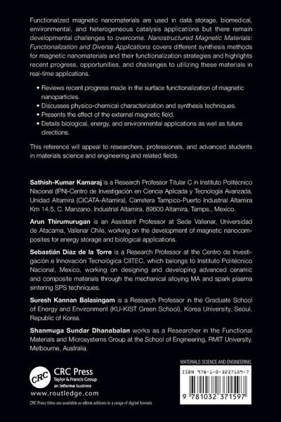 Nanostructured Magnetic Materials: Functionalization and Diverse Applications covers different synthesis methods of magnetic nanomaterials and their functionalization strategies and highlights recent progress, opportunities, and challenges to utilizing these materials in real-time applications.