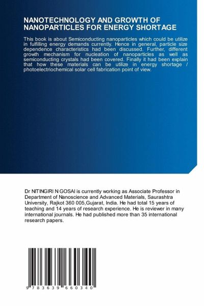 This book is about Semiconducting nanoparticles which could be utilize in fulfilling energy demands currently. Hence in general, particle size dependence characteristics had been discussed. Further, different growth mechanism for nucleation of nanoparticles as well as semiconducting crystals had been covered. Finally it had been explain that how these materials can be utilize in energy shortage / photoelectriochemical solar cell fabrication point of view.