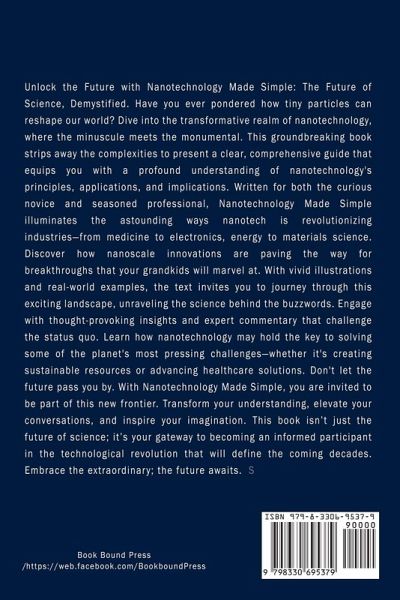 Unlock the Future with Nanotechnology Made Simple: The Future of Science, Demystified. Have you ever pondered how tiny particles can reshape our world? Dive into the transformative realm of nanotechnology, where the minuscule meets the monumental. This groundbreaking book strips away the complexities to present a clear, comprehensive guide that equips you with a profound understanding of nanotechnology's principles, applications, and implications. Written for both the curious novice and seasoned professional, Nanotechnology Made Simple illuminates the astounding ways nanotech is revolutionizing industries-from medicine to electronics, energy to materials science. Discover how nanoscale innovations are paving the way for breakthroughs that your grandkids will marvel at. With vivid illustrations and real-world examples, the text invites you to journey through this exciting landscape, unraveling the science behind the buzzwords. Engage with thought-provoking insights and expert commentary that challenge the status quo. Learn how nanotechnology may hold the key to solving some of the planet's most pressing challenges-whether it's creating sustainable resources or advancing healthcare solutions. Don't let the future pass you by. With Nanotechnology Made Simple, you are invited to be part of this new frontier. Transform your understanding, elevate your conversations, and inspire your imagination. This book isn't just the future of science; it's your gateway to becoming an informed participant in the technological revolution that will define the coming decades. Embrace the extraordinary; the future awaits.