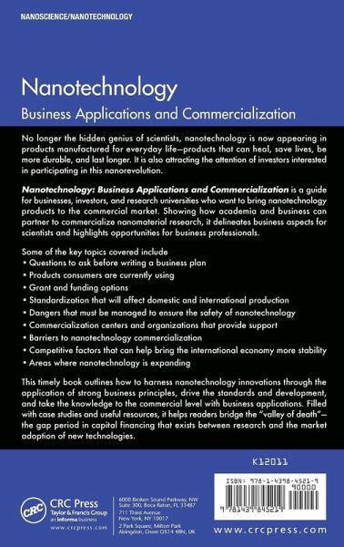 No longer the hidden genius of scientists, nanotechnology is now appearing in products manufactured for everyday life. Focusing on the transition of new nanomaterial technology to the commercial market, this book presents a nanotech commercialization framework that will enable partnership development between research universities, businesses, and investors. The author argues that it is imperative to direct commercial nano development into legitimate business channels and to nurture development in a standardized environment. The text aims to eliminate the commercialization gap between business and technology, providing a structure for industry growth and highlighting new business opportunities for technology applications.
