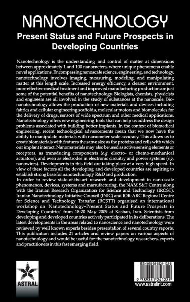 Nanotechnology is the understanding and control of matter at dimensions between approximately 1 and 100 nanometers, where unique phenomena enable novel applications. Encompassing nanoscale science, engineering, and technology, nanotechnology involves imaging, measuring, modeling, and manipulating matter at this length scale. Increased energy efficiency, a cleaner environment, more effective medical treatment and improved manufacturing production are just some of the potential benefits of nanotechnology. Biologists, chemists, physicists and engineers are all involved in the study of substances at the nanoscale. Bio-nanotechnology allows the production of new materials and devices including fabrics and cellular engineering scaffolds, molecular motors and biomolecules for the delivery of drugs, sensors of wide spectrum and other medical applications. Nanotechnology offers new engineering tools that can help us address the design problems associated with building better implants. In the context of biomedical engineering, recent technological advancements mean that we now have the ability to manipulate materials with nanometer scale accuracy. This allows us to create biomaterials with features the same size as the proteins and cells with which our implant interact. Nanomaterials may also be used as active sensing elements or receptors, as transducing components (e.g. electro- or chemo-mechanical actuators), and even as electrodes in electronic circuitry and power systems (e.g. nanowires). Developments in this field are taking place at a very high speed. In view of these factors all the developing and developed countries are aspiring to establish strong base for nanotechnology R&D and production. In order to review state-of-the-art research and development in nano-scale phenomenon, devices, systems and manufacturing, the NAM S&T Centre along with the Iranian Research Organization for Science and Technology (IROST), Iranian Nanotechnology Initiative Council (INIC) and IOR-ARC Regional Centre for Science and Technology Transfer (RCSTT) organised an international workshop on 'Nanotechnology-Present Status and Future Prospects in Developing Countries' from 18-20 May 2009 at Kashan, Iran. Scientists from developing and developed countries actively participated in its deliberations. The latest developments in the areas related to nanoscience and nanotechnology were reviewed by well known experts besides presentation of several country reports. This publication includes 21 articles and review papers on various aspects of nanotechnology and would be useful for the nanotechnology researchers, experts and practitioners in this fast emerging field.