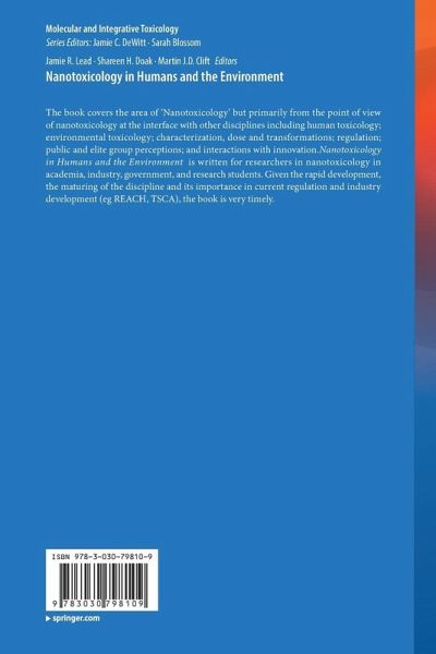 The book covers the area of 'Nanotoxicology' but primarily from the point of view of nanotoxicology at the interface with other disciplines including human toxicology; environmental toxicology; characterization, dose and transformations; regulation; public and elite group perceptions; and interactions with innovation.Nanotoxicology in Humans and the Environment is written for researchers in nanotoxicology in academia, industry, government, and research students. Given the rapid development, the maturing of the discipline and its importance in current regulation and industry development (eg REACH, TSCA), the book is very timely.
