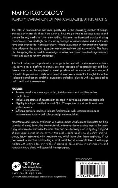 The field of nanomedicine has risen quickly due to the increasing number of designer-made nanomaterials. These nanomaterials have the potential to manage diseases and change the way medicine is currently studied. However, the increased practice of using nanomaterials has shed light on how many concepts of nanomedicine and nanotoxicity have been overlooked. Nanotoxicology: Toxicity Evaluation of Nanomedicine Applications addresses the existing gaps between nanomedicine and nanotoxicity. This book also brings together up-to-date knowledge on advances toward safe-by-design nanomaterials and existing toxicity challenges. This book delivers a comprehensive coverage in the field with fundamental understanding, serving as a platform to convey essential concepts of nanotoxicology and how these concepts can be employed to develop advanced nanomaterials for a range of biomedical applications. This book is an effort to answer some of the thoughtful nanotoxicological complications and their auspicious probable solutions with new approaches and careful toxicity assessment. Key Features: Reveals novel nanoscale approaches, toxicity assessment, and biomedical applications Includes importance of nanotoxicity concepts in developing smart nanomaterials Highlights unique contributions and "A to Z" aspects on the state-of-the-art from global leaders Offers a complete package to learn fundamentals with recommendations on nanomaterials toxicity and safe-by-design nanomedicines Nanotoxicology: Toxicity Evaluation of Nanomedicine Applications illuminates the high potential of many innovative nanomaterials, ultimately demonstrating them to be promising substitutes for available therapies that can be effectively used in fighting a myriad of biomedical complications. Further, this book reports legal, ethical, safety, and regulatory issues associated with nanomaterials, which have often been neglected, if not overlooked in literature and limiting clinical translation at nanoscale level. It will equip readers with cutting-edge knowledge of promising developments in nanomedicine and nanotoxicology, along with potential future prospects. ¿ ¿