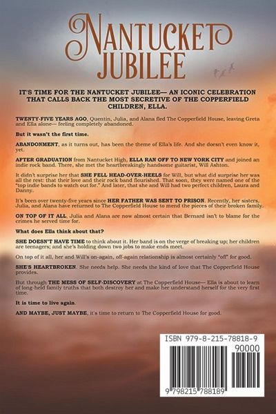 It's time for the Nantucket Jubilee-- an iconic celebration that calls back the most secretive of the Copperfield children, Ella. Twenty-five years ago, Quentin, Julia, and Alana fled The Copperfield House, leaving Greta and Ella alone-- feeling completely abandoned. But it wasn't the first time. Abandonment, as it turns out, has been the theme of Ella's life. And she doesn't even know it, yet. After graduation from Nantucket High, Ella ran off to New York City and joined an indie rock band. There, she met the heartbreakingly handsome guitarist, Will Ashton. It didn't surprise her that she fell head-over-heels for Will, but what did surprise her was all the rest: that their love and their rock band flourished. That soon, they were named one of the "top indie bands to watch out for." And later, that she and Will had two perfect children, Laura and Danny. It's been over twenty-five years since her father was sent to prison. Recently, her sisters, Julia, and Alana have returned to The Copperfield House to mend the pieces of their broken family. On top of it all, Julia and Alana are now almost certain that Bernard isn't to blame for the crimes he served time for. What does Ella think about that? She doesn't have time to think about it. Her band is on the verge of breaking up; her children are teenagers; and she's holding down two jobs to make ends meet. On top of it all, her and Will's on-again, off-again relationship is almost certainly "off" for good. She's heartbroken. She needs help. She needs the kind of love that The Copperfield House provides. But through the mess of self-discovery at The Copperfield House-- Ella is about to learn of long-held family truths that both destroy her and make her understand herself for the very first time. It is time to live again. And maybe, just maybe, it's time to return to The Copperfield House for good. Dive into this brand-new women's fiction series set on the Island of Nantucket. A glorious world of beautiful beaches, frothing waves, cobblestone streets, and a beloved cast of characters. The series tells the story of the Copperfield Family, their return to Nantucket Island, and their healing after decades of pain and loneliness. Together, they can be better than ever before.