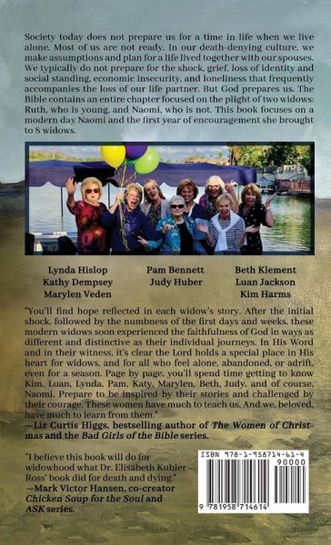 Society today does not prepare us for an time in life when we live alone. Most of us are not ready. In our death-denying culture, we make assumptions and plan for an life lived together with our spouses. We typically do not prepare for the shock, grief, loss of identity and social standing, economic insecurity, and loneliness that frequently accompanies the loss of our life partner. But God prepares us. The Bible contains an entire chapter focused on the plight of two widows: Ruth, who is young, and Naomi, who is not. This book focuses on a modern day Naomi and the first year of encouragement she brought to 8 widows.