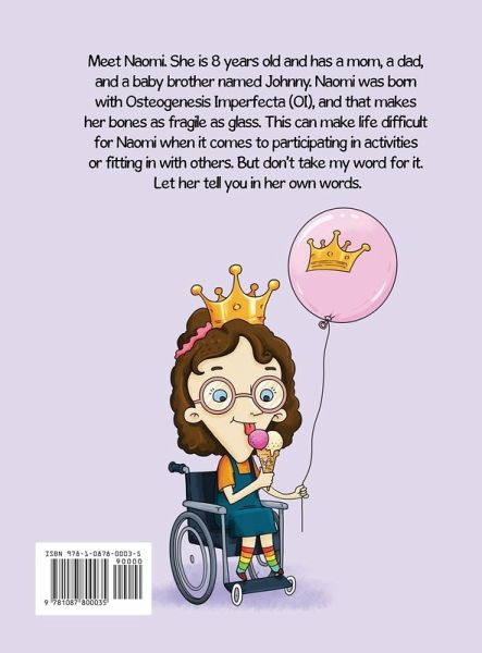 Meet Naomi. She is 8 years old and has a mom, a dad, and a baby brother named Johnny. Naomi was born with Osteogenesis Imperfecta (OI), and that makes her bones as fragile as glass. This can make life difficult for Naomi when it comes to participating in activities or fitting in with others. But don't take my word for it. Let her tel you in her own words.