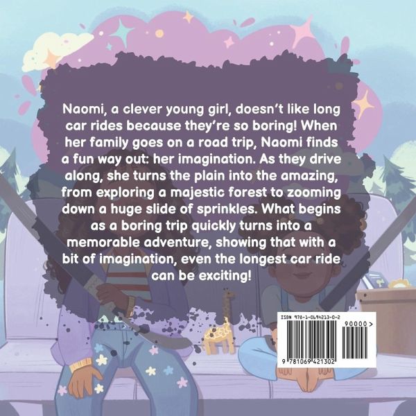 The authors of My Beautiful Curly Hair present: Naomi's Imagination Is a long car ride the most boring thing you can imagine? Meet Naomi, a 10-year-old girl who turns a boring car ride into an exciting adventure using her imagination. As she travels with her family, Naomi discovers she can escape to magical places, from deep underwater scenes with colourful mermaids to a vibrant forest and a sugary candy land. Naomi's Imagination inspires children to explore the endless possibilities of their minds. It's an engaging tale that encourages young readers to find joy and wonder in everyday moments through the power of imagination. * Explore diverse and imaginative worlds * Learn the value of creativity * Perfect for young readers under 12 * Engage with Naomi's colourful adventures * Bright playful illustrations * Readers will learn the importance of self-expression Naomi's Imagination is an interactive book that poses questions to the reader, actively engaging their minds. It concludes with reading comprehension questions that the entire family can enjoy.