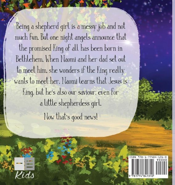 Being a shepherd girl is a messy job and not much fun. But one night angels announce that the promised King of all has been born in Bethlehem. When Naomi and her dad set out to meet him, she wonders if the King really wants to meet her. Naomi learns that Jesus is King, but he's also our saviour, even for a little shepherdess girl. Now that's good news!