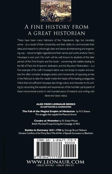 A fine history from a great historian There have been many historians of the Napoleonic Age, but inevitably some-as a result of their scholarship and their ability to communicate their ideas and research in a thorough, clear and above all entertaining and engrossing way-become highly regarded and their names and works endure. Henry Houssaye is one such. His work will be well known to students of the later period of the First Empire and this book-concerning the battles leading to the fall of Paris, the Emperors abdication and the Bourbon Restoration-is a fine example of his craft. Houssaye's talent was not simply to explain and analyse the often complex strategies, tactics and movements of opposing armies in the field, but to take the reader inside the heads of the leading protagonists. Were that not sufficient Houssaye also brings colour and character to his writing by recounting the exploits and experiences of the humbler participants of these monumental events. A well rounded piece of research and writing with deserved classic status.