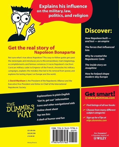 Not sure what s true about Napoleon? This easy-to-follow guide gets past the stereotypes and introduces you to this extraordinary man s beginnings, accomplishments, and famous romances. It traces Napoleon s rise from Corsican military cadet to Emperor of the French, chronicles his military campaigns, explains the mistakes that led to his removal from power, and explores his lasting impact on Europe and the world.