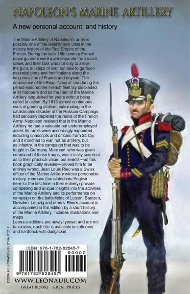 A new personal account and history The Marine Artillery of Napoleon's army is possibly one of the least well known units in the military history of the First Empire of the French. During the later 18th century French naval gunners were quite separate from naval crews and their task was not only to serve the guns on ships of war, but also to garrison essential ports and fortifications along the long coastline of France and beyond. The dominance of the Royal Navy at sea during this period ensured the French fleet lay blockaded in its harbours and so the men of the Marine Artillery languished for years without being called to action. By 1813 almost continuous wars of grinding attrition, culminating in the catastrophic disaster of the Russian Campaign, had seriously depleted the ranks of the French Army. Napoleon realised that in the Marine Artillery he had a valuable but underemployed asset. Its ranks were accordingly expanded, including conscripts and officers from St. Cyr, and it marched to war, not as artillery, but as infantry, in the campaign that was to be fought in Germany. Marmont, who was given command of these troops, was initially sceptical as to their practical value, but events—as this book graphically reveals—proved him to be entirely wrong. Jean Louis Rieu was a Swiss officer of the Marine Artillery whose personable military memoirs (translated into English here for the first time in their entirety) provide compelling and unique insights into the activities of the Marine Artillery and its performance on campaign on the battlefields of Lutzen, Bautzen, Dresden, Leipzig and others. Rieu's account is accompanied in this edition by a short history of the Marine Artillery. Includes illustrations and maps. Leonaur editions are newly typeset and are not facsimiles; each title is available in softcover and hardback with dustjacket.