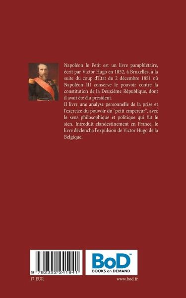 Napoléon le Petit est un livre pamphlétaire, écrit par Victor Hugo en 1852, à Bruxelles, à la suite du coup d'État du 2 décembre 1851 où Napoléon III conserve le pouvoir contre la constitution de la Deuxième République, dont il avait été élu président.Il y livre une analyse personnelle de la prise et l'exercice du pouvoir du "petit empereur", avec le sens philosophique et politique qui fut le sien. Introduit clandestinement en France, le livre déclencha l'expulsion de Victor Hugo de la Belgique qui promulgua, pour parvenir à son départ, la loi Faider III et Victor Hugo s'est alors exilé à Jersey.