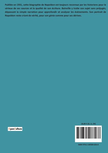 Publiée en 1931, cette biographie de Napoléon est toujours reconnue par les historiens pour le sérieux de ses sources et la qualité de son écriture. Bainville y traite son sujet sans préjugés, dépassant la simple narration pour approfondir et analyser les événements. Son portrait de Napoléon reste criant de vérité, pour son génie comme pour ses dérives.