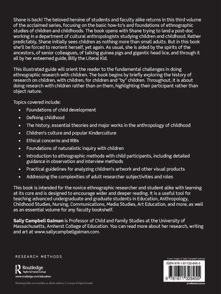 Shane is back! The beloved heroine of students and faculty alike returns in this third volume of the acclaimed series, focusing on the basic how-to's and foundations of ethnographic studies of children and childhoods. The book opens with Shane trying to land a post-doc working in a department of cultural anthropologists studying children and childhood. Rather predictably, Shane initially sees children as nothing more than small adults. But in this book she'll be forced to reorient herself, yet again. As usual, she is aided by the spirits of the ancestors, of senior colleagues, of talking guinea pigs and gigantic head lice, and through it all by her esteemed guide, Billy the Literal Kid.