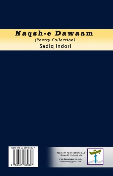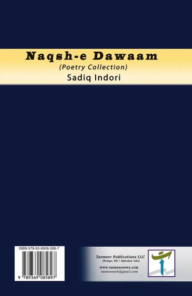 Poetry is the highest form of art. In the construction of which different elements seem to be working; But these elements are interconnected in such a subtle way that to separate them would be to dull its aesthetic life. Poetry is based on imagination, the higher the flight of the poet's thoughts and the more exaggeration in the essay, the more beautiful the poem will be. Sadiq Indori (1917-1984) was a reknown poet of Madhya Pradesh. He was also the father of a well known Urdu personality Aijaz Ubaid. He was well known for his knowledge of Urooz, and was the "Ustad" of a number of poets, including the famous poet Rahat Indori. "Naqsh-e Dawaam (quadruplets)" is a collection of selected Rubayiaat and Qat'aat by Sadiq Indori.