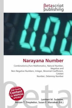High Quality Content by WIKIPEDIA articles! In combinatorics, the Narayana numbers N(n, k), n = 1, 2, 3 ..., 1 k n, form a triangle of natural numbers, called Narayana triangle, that occur in various counting problems. They are named for T.V. Narayana, a mathematician from India. Natural numbers have two main purposes: counting ("there are 6 coins on the table") and ordering ("this is the 3rd largest city in the country"). These purposes are related to the linguistic notions of cardinal and ordinal numbers, respectively. A more recent notion is that of a nominal number, which is used only for naming. Properties of the natural numbers related to divisibility, such as the distribution of prime numbers, are studied in number theory. Problems concerning counting and ordering, such as partition enumeration, are studied in combinatorics.