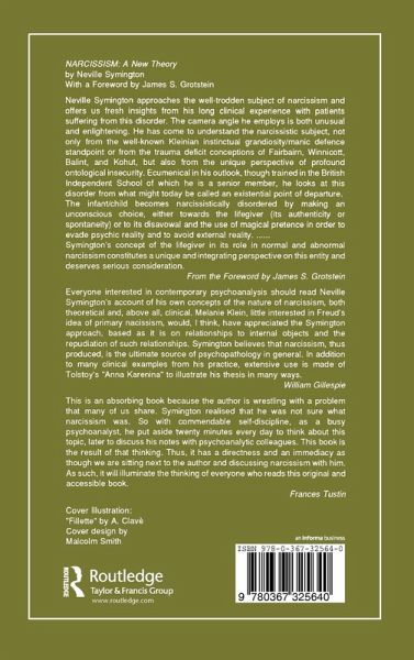 In this book, Neville Symington approaches the well-trodden subject of narcissism, offers us fresh insights from his long clinical experience with patients suffering from this disorder, and sketches some highlights in the history of the concept of narcissism.