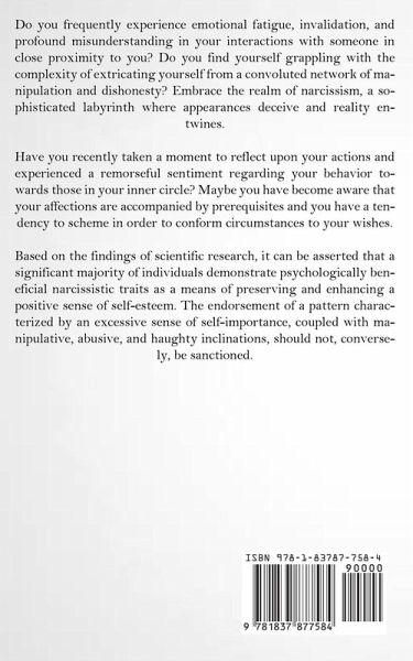 Do you frequently experience emotional fatigue, invalidation, and profound misunderstanding in your interactions with someone in close proximity to you? Do you find yourself grappling with the complexity of extricating yourself from a convoluted network of manipulation and dishonesty? Embrace the realm of narcissism, a sophisticated labyrinth where appearances deceive and reality entwines. Have you recently taken a moment to reflect upon your actions and experienced a remorseful sentiment regarding your behavior towards those in your inner circle? Maybe you have become aware that your affections are accompanied by prerequisites and you have a tendency to scheme in order to conform circumstances to your wishes. Based on the findings of scientific research, it can be asserted that a significant majority of individuals demonstrate psychologically beneficial narcissistic traits as a means of preserving and enhancing a positive sense of self-esteem. The endorsement of a pattern characterized by an excessive sense of self-importance, coupled with manipulative, abusive, and haughty inclinations, should not, conversely, be sanctioned.