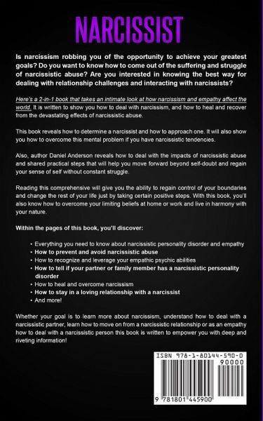 Is narcissism robbing you of the opportunity to achieve your greatest goals? Do you want to know how to come out of the suffering and struggle of narcissistic abuse? Are you interested in knowing the best way for dealing with relationship challenges and interacting with narcissists? This book takes an intimate look at how narcissism and empathy affect the world. It is written to show you how to deal with narcissism, and how to heal and recover from the devastating effects of narcissistic abuse. This book reveals how to determine a narcissist and how to approach one. It will also show you how to overcome this mental problem if you have narcissistic tendencies. Also, author Daniel Anderson reveals how to deal with the impacts of narcissistic abuse and shared practical steps that will help you move forward beyond self-doubt and regain your sense of self without constant struggle. Reading this comprehensive will give you the ability to regain control of your boundaries and change the rest of your life just by taking certain positive steps. With this book, you'll also know how to overcome your limiting beliefs at home or work and live in harmony with your nature. Within the pages of this book, you'll discover: Everything you need to know about narcissistic personality disorder and empathy How to prevent and avoid narcissistic abuse How to tell if your partner or family member has a narcissistic personality disorder How to heal and overcome narcissism How to stay in a loving relationship with a narcissist And more! Whether your goal is to learn more about narcissism, understand how to deal with a narcissistic partner, learn how to move on from a narcissistic relationship or you simply want to discover your own level of narcissism, this book is written to empower you with deep and riveting information!