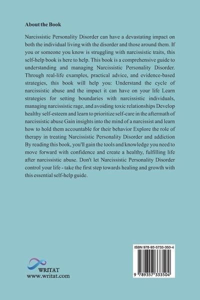 Narcissistic Personality Disorder can have a devastating impact on both the individual living with the disorder and those around them. If you or someone you know is struggling with narcissistic traits, this self-help book is here to help. This book is a comprehensive guide to understanding and managing Narcissistic Personality Disorder. Through real-life examples, practical advice, and evidence-based strategies, this book will help you: Understand the cycle of narcissistic abuse and the impact it can have on your life Learn strategies for setting boundaries with narcissistic individuals, managing narcissistic rage, and avoiding toxic relationships Develop healthy self-esteem and learn to prioritize self-care in the aftermath of narcissistic abuse Gain insights into the mind of a narcissist and learn how to hold them accountable for their behavior Explore the role of therapy in treating Narcissistic Personality Disorder and addiction By reading this book, you'll gain the tools and knowledge you need to move forward with confidence and create a healthy, fulfilling life after narcissistic abuse. Don't let Narcissistic Personality Disorder control your life - take the first step towards healing and growth with this essential self-help guide.