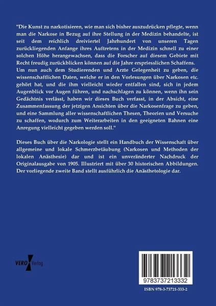 Dieses Buch über die Narkologie stellt ein Handbuch der Wissenschaft über allgemeine und lokale Schmerzbetäubung (Narkosen und Methoden der lokalen Anästhesie) dar und ist ein unveränderter Nachdruck der Originalausgabe von 1905. Illustriert mit über 30 historischen Abbildungen. Der vorliegende zweite Band stellt ausführlich die Anästhetologie dar.