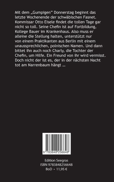Mit dem 'Gumpigen' Donnerstag beginnt das letzte Wochenende der schwäbischen Fasnet. Kommissar Otto Eisele findet die tollen Tage gar nicht so toll. Seine Chefin Rose Gebhard ist auf Fortbildung, Kollege Bauer im Krankenhaus. Also muss er alleine die Stellung halten, unterstützt nur von einem Praktikanten aus Berlin mit einem unaussprechlichen polnischen Namen. Und dann bittet ihn auch noch Charly, die Tochter der Chefin, um Hilfe. Ein Freund von ihr wird vermisst. Doch nicht der ist es, der in der nächsten Nacht tot am Narrenbaum hängt ...