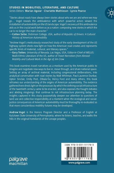 This book examines travel narratives as a medium used by the American public to imagine and negotiate new ways to live in, move through, and share national space. Setting an array of archival material, including congressional deliberations, into analytical conversation with road stories by Walt Whitman, Paul Laurence Dunbar, Upton Sinclair, Emily Post, Zitkala-Sa, Henry Ford and many others, this book reframes our understanding of the origins of American automobility. The evidence gathered here sheds light on the processes by which the defining social infrastructure of the twentieth century came to be enacted, and also exposes the fraught debates and abiding misgivings that continue to roil infrastructure planning today. The insights captured in this study purposefully deepen our attention to questions of land use and collective responsibility at a moment when the ecological and social-justice consequences of American automobility must be thoroughly re-evaluated so that more conscientious mobility futures may be developed.