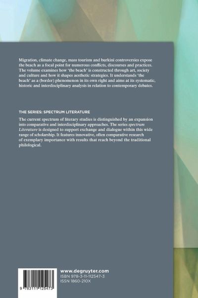 The beach confronts us with crucial issues of our times: migration, postcolonial power structures and mass tourism, climate change and pollution as well as gender and burkini swimwear controversies are examples of the numerous conflicts, discourses and practices that manifest within this liminal zone and that find their focal point there. The interdisciplinary volume understands 'the beach' as a (border) phenomenon in its own right and contributes to the new field of beach studies. It takes its point of departure from this changing image of 'the beach' to explore how its topographies, experiences and cultural significations are constructed through art, society and culture and how 'the beach' shapes poetics and aesthetic strategies in literature, film, photography, painting, music and performance. It aims to gain systematic insights from an analysis of historically and geographically specific varieties of the beach and to create a critical awareness for the contextual implicationsof contemporary discussions revolving around 'the beach'.