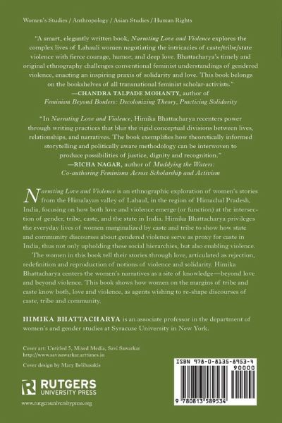 Narrating Love and Violence is an ethnographic exploration of women’s stories from the Himalayan valley of Lahaul, in the region of Himachal Pradesh, India, focusing on how both, love and violence emerge (or function) at the intersection of gender, tribe, caste, and the state in India. Himika Bhattacharya privileges the everyday lives of women marginalized by caste and tribe to show how state and community discourses about gendered violence serve as proxy for caste in India, thus not only upholding these social hierarchies, but also enabling violence. The women in this book tell their stories through love, articulated as rejection, redefinition and reproduction of notions of violence and solidarity. Himika Bhattacharya centers the women’s narratives as a site of knowledge-beyond love and beyond violence. This book shows how women on the margins of tribe and caste know both, love and violence, as agents wishing to re-shape discourses of caste, tribe and community.