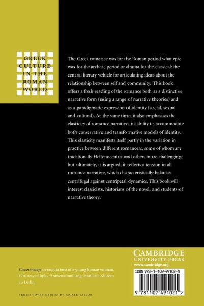 The Greek romance was for the Roman period what epic was for the Archaic period or drama for the Classical: the central literary vehicle for articulating ideas about the relationship between self and community. This book offers a reading of the romance both as a distinctive narrative form (using a range of narrative theories) and as a paradigmatic expression of identity (social, sexual and cultural). At the same time it emphasises the elasticity of romance narrative and its ability to accommodate both conservative and transformative models of identity. This elasticity manifests itself partly in the variation in practice between different romancers, some of whom are traditionally Hellenocentric while others are more challenging. Ultimately, however, it is argued that it reflects a tension in all romance narrative, which characteristically balances centrifugal against centripetal dynamics. This book will interest classicists, historians of the novel and students of narrative theory.