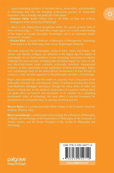 This book proposes that technologies, similar to texts, novels and movies, 'tell stories' and thereby configure our lifeworld in the Digital Age. The impact of technologies on our lived experience is ever increasing: innovations in robotics challenge the nature of work, emerging biotechnologies impact our sense of self, and blockchain-based smart contracts profoundly transform interpersonal relations. In their exploration of the significance of these technologies, Reijers and Coeckelbergh build on the philosophical hermeneutics of Paul Ricouer to construct a new, narrative approach to the philosophy and ethics of technology.